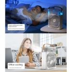 پنکه مه پاش رومیزی تایمردار | خنککننده چندکاره با نور RGB